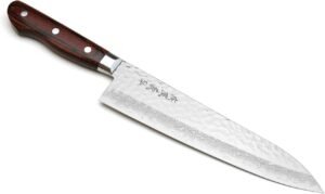 A luxury chef’s knife, ideal for connoisseurs of exquisite Japanese workmanship. A long-lasting edge is guaranteed by the VG10 steel, and the mahogany handle offers style and traction.